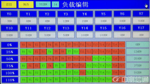 如圖(100KW控制圖):首先設(shè)置各輸出口功率:Y1~Y17,功率從小到大設(shè)置。再設(shè)置25%,50%,75%,100%,110%,該由那些負(fù)載投入,設(shè)定后按返回鍵。