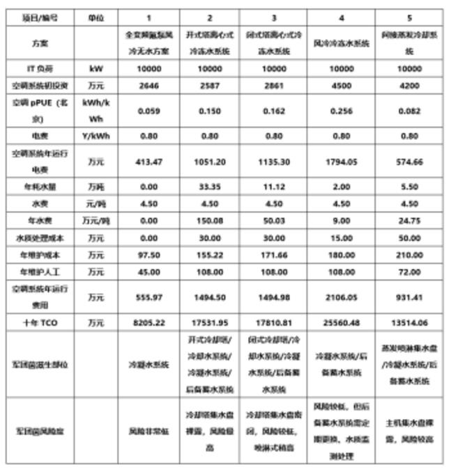 數(shù)據(jù)中心主流空調(diào)方案TCO及軍團(tuán)菌風(fēng)險對比