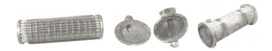圖6-37 潤滑油冷卻器零件分解實(shí)物圖(芯子、邊蓋、殼體)