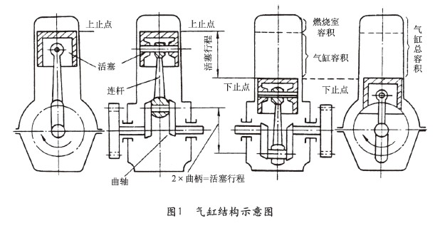 柴油機的基本結構如圖1所示:有氣缸、活塞、連桿、曲軸、飛輪。
