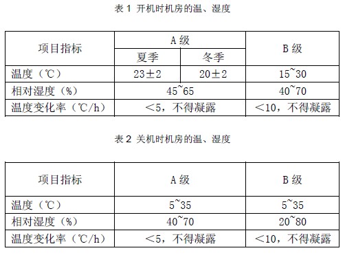 計(jì)算機(jī)機(jī)房溫、濕度要求按開機(jī)時(shí)和停機(jī)時(shí)分別加以規(guī)定。