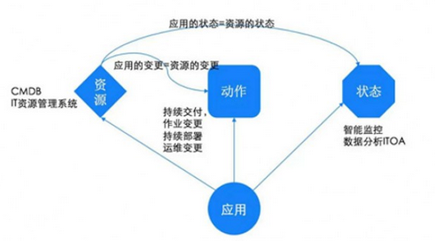 在ITIL時代,大家都知道一個概念,CMDB是IT服務系統(tǒng)的元數據中心,而現(xiàn)在應用更應該是CMDB的元數據。把運維的能力建立在面向應用的維度上,把面向應用的IT能力分成三部分:
