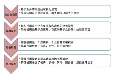但一定要注意CMDB的信息分成兩類,一類是實例信息,一類是連接信息,也稱為拓撲信息。拓撲信息需要結合我們平時的工作思路來建設和維護,比如說架構視圖,是研發(fā)轉維的過程中,必須要提供的輸入,就是應用架構文檔。部署視圖,是指這個應用上線部署在哪些機房,哪些node;A架構拓撲是物理overlay,這個地方表達的是基礎設施層面的關系。業(yè)務流視圖分成應用服務和端到端服務構建的能力視圖,類似訪問流拓撲。